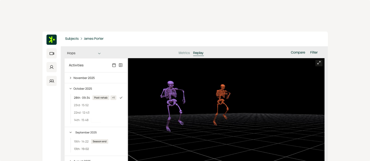 Designed for practical deployment, Model Health reduces setup friction and automates key processing steps. Teams can run studies with a lighter operational footprint and produce high-quality, exportable biomechanics data and key metrics that supports rigorous downstream analysis.